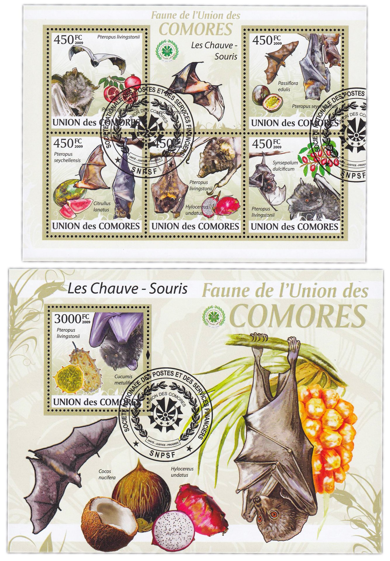 купить Коморские острова марки набор из 4 квартблоков "Флора и фауна. Летучие мыши"