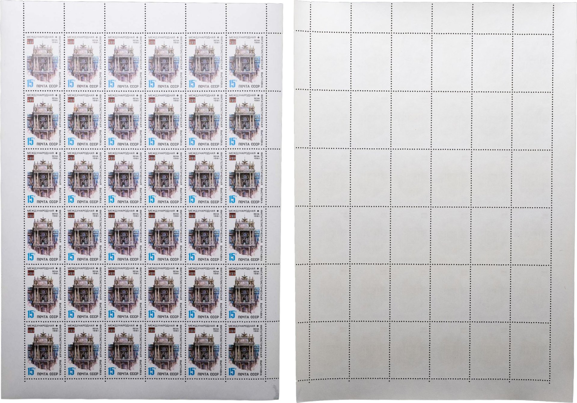 Марки квартблок 15 копеек "Международная филателистическая выставка. Вена. СССР 1981"