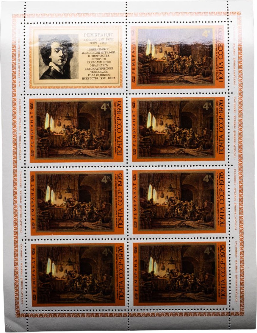 Купить Марки квартблок "Искусство. Рембрандт. Притча о работниках на винограднике. СССР 1976"