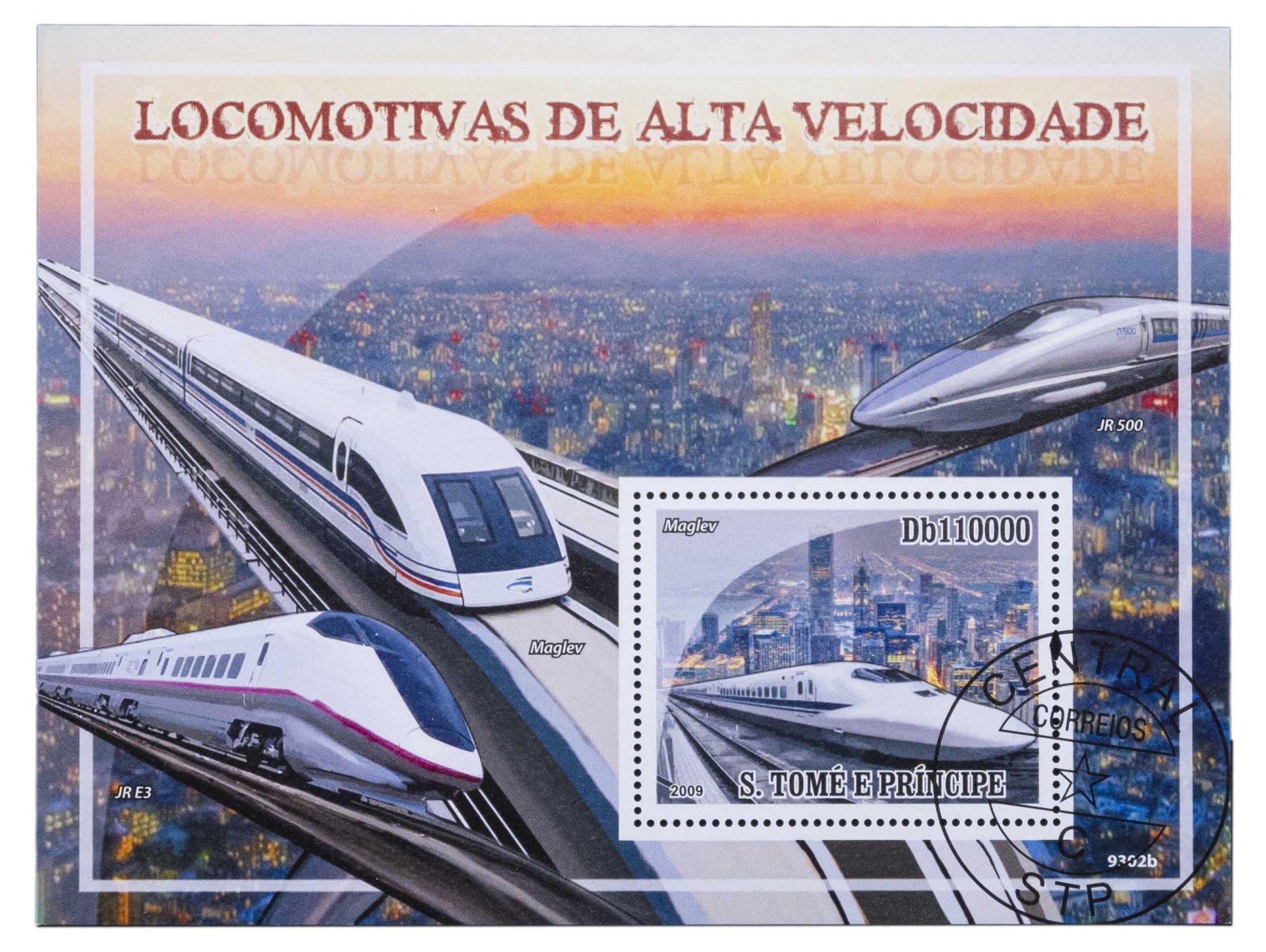 Сан-Томе и Принсипи марки квартблок "Поезда"