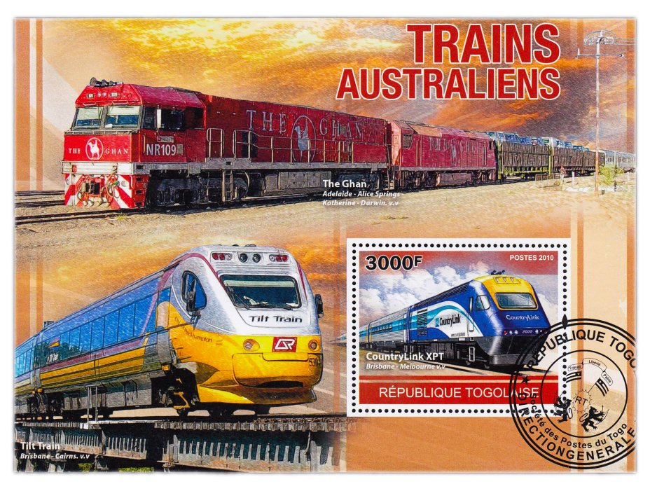 Купить Того марки квартблок "Ретро поезда Австралии"