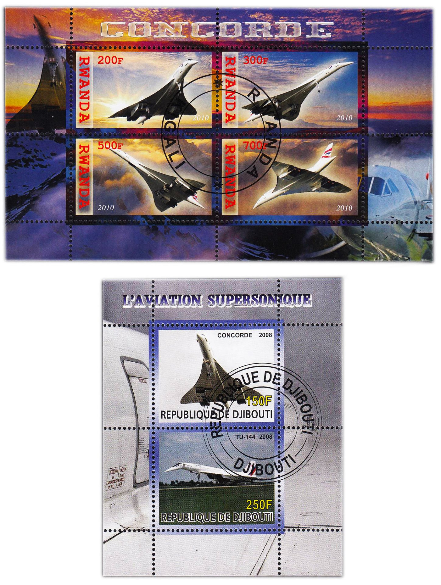 купить Джибути марки набор из 2 квартблоков "Самолеты. Сверхзвуковые"