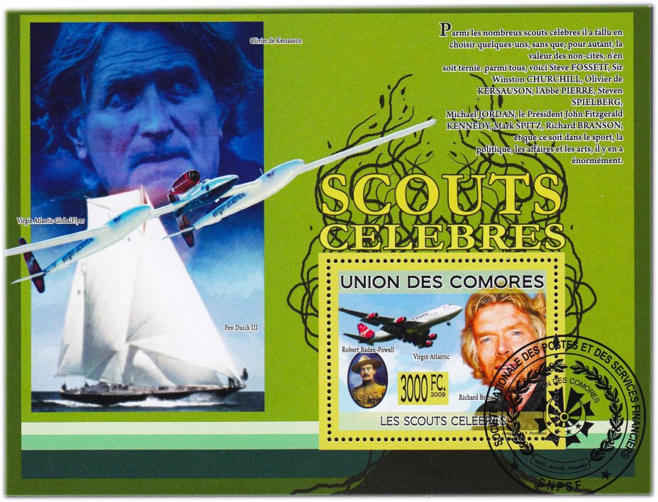 Коморские острова марки набор квартблок "Самолеты. Скауты знаменитости"