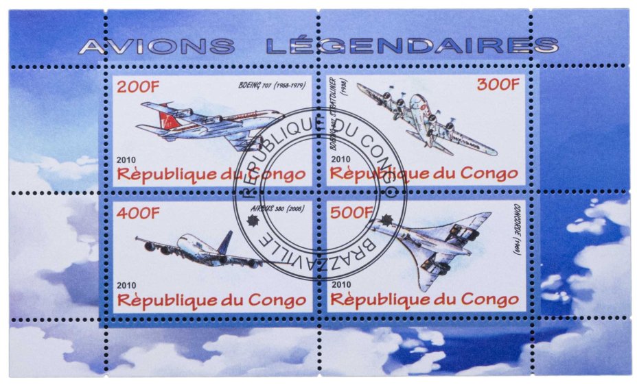 Купить Конго марки квартблок  "Самолеты. Легендарные"