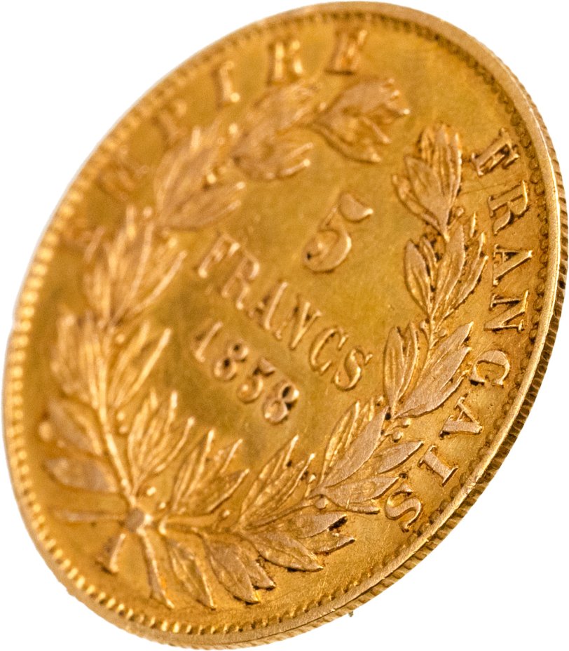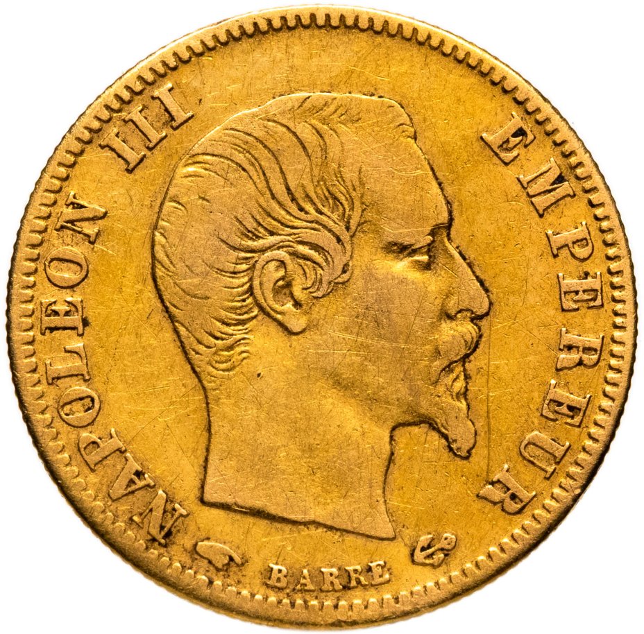 Франция 5 франков (francs) 1858, знак монетного двора: "A" - Париж