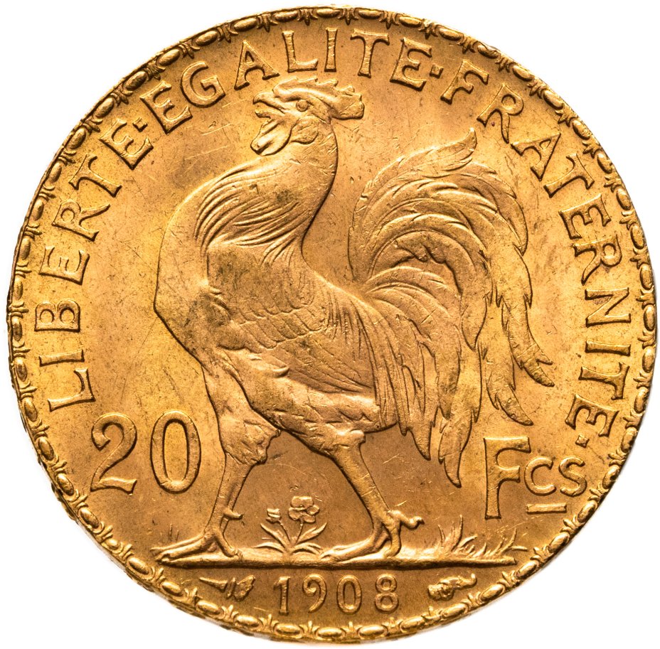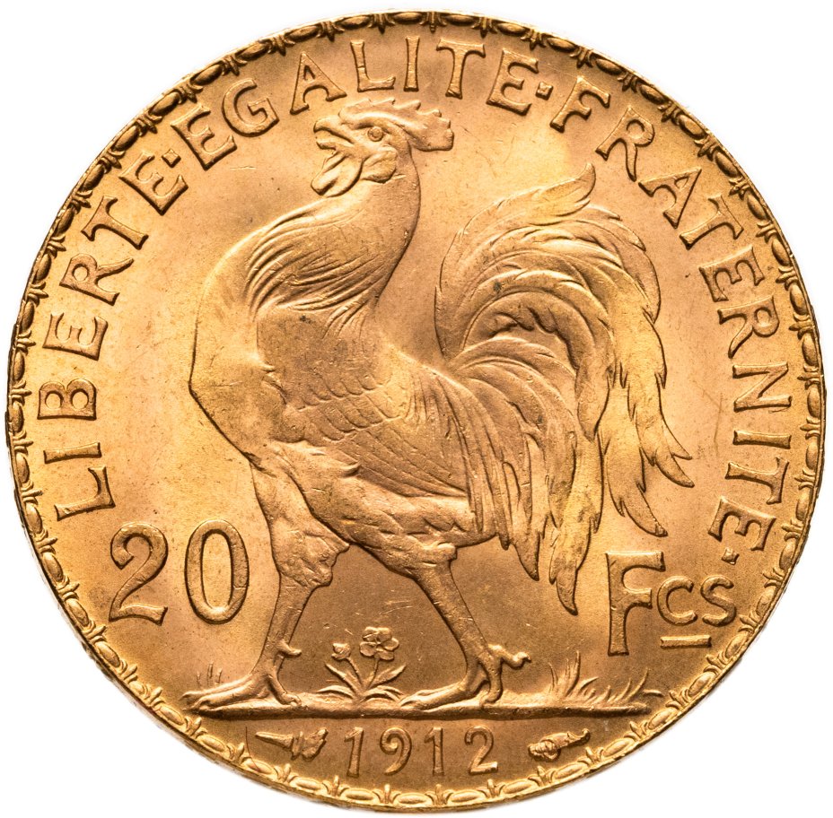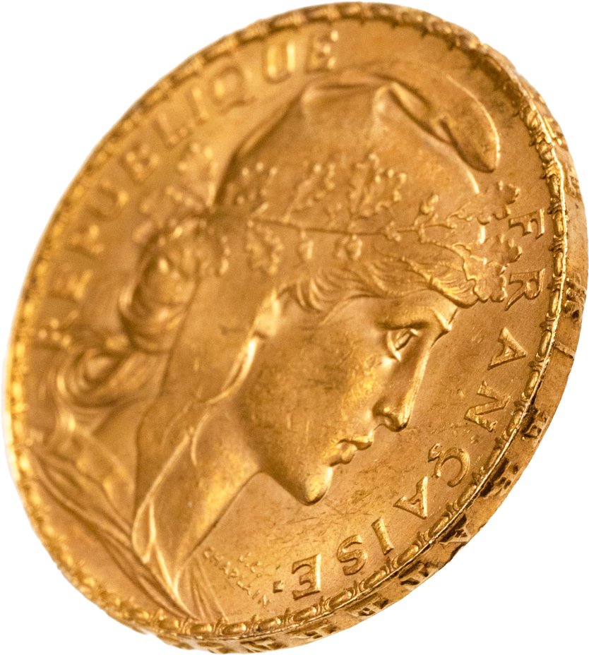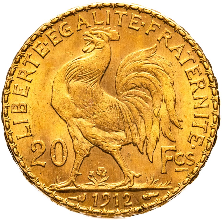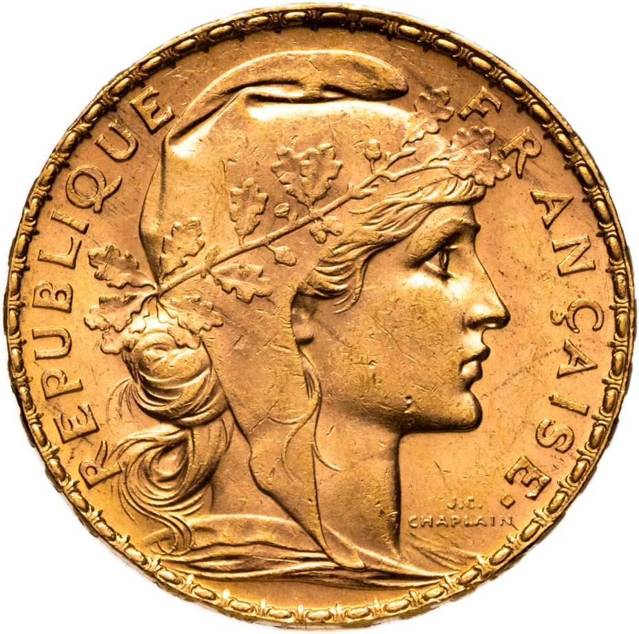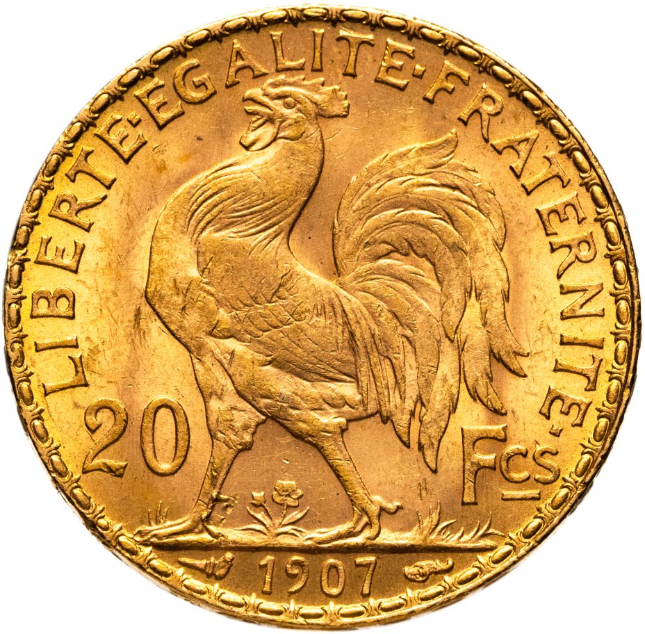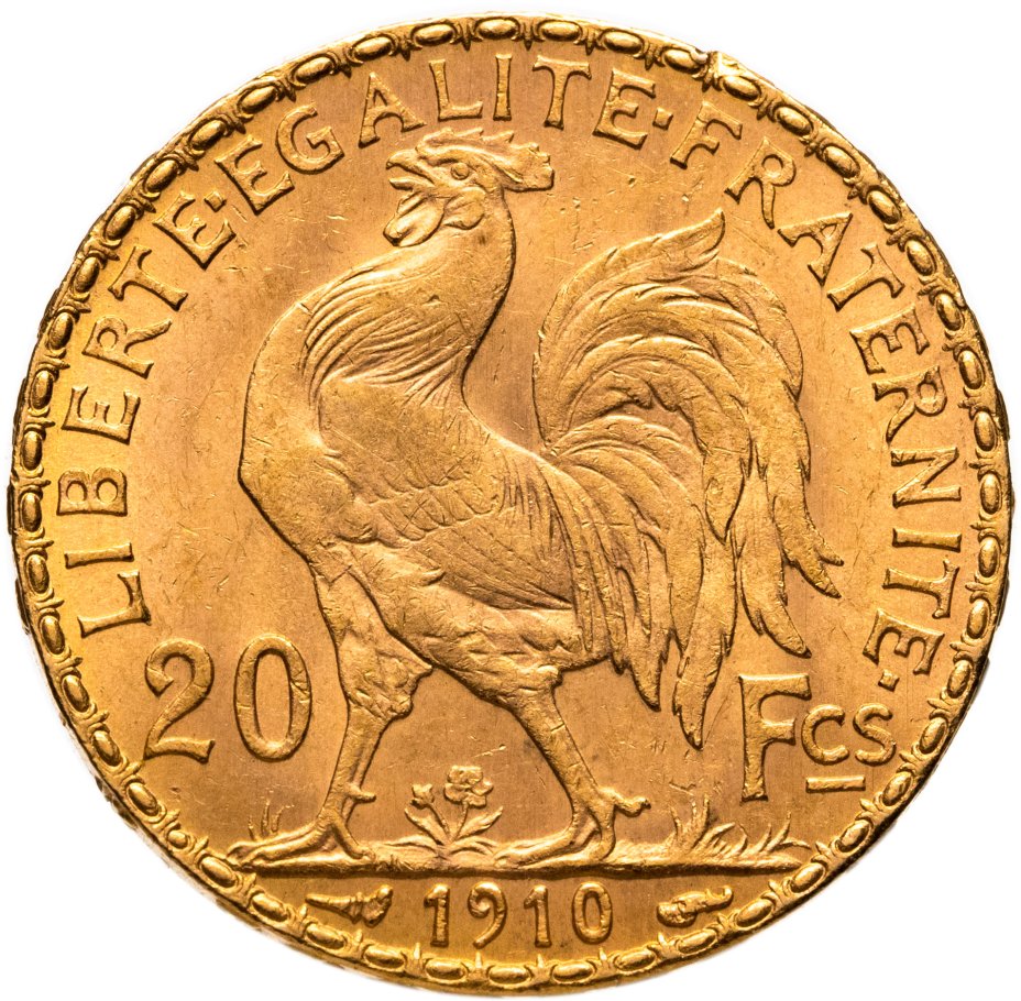 Франция 20 франков (francs) 1851, знак монетного двора: "А" - Париж