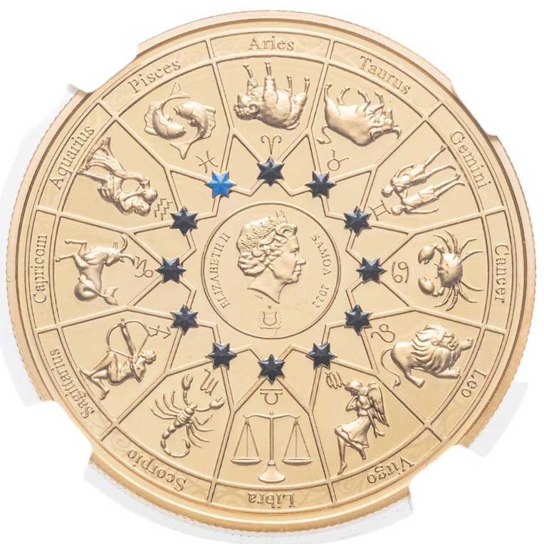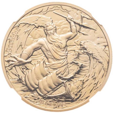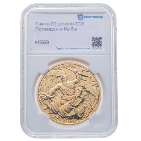Самоа 20 центов (cents) 2021 "12 Олимпийских богов в зодиаке - Посейдон и Рыбы" в слабе Монетник.ру MS69