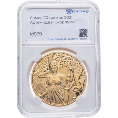 купить Самоа 20 центов (cents) 2021 "12 Олимпийских богов в зодиаке - Афина и Овен" в слабе Монетник.ру MS69