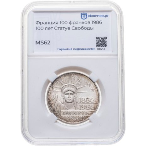 Франция 100 франков (francs) 1986 100 лет Статуи Свободы в слабе Монетник. ру MS62