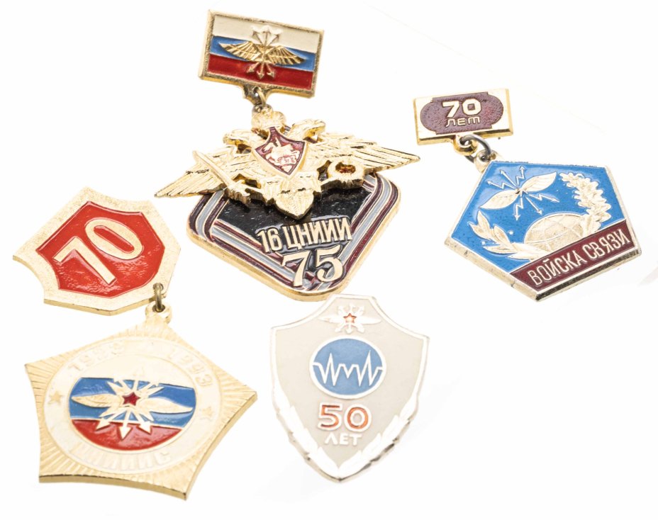 Подборка из 4-х памятных нагрудных знаков в честь юбилея подразделений войск связи, СССР-Россия, 1990-е гг.