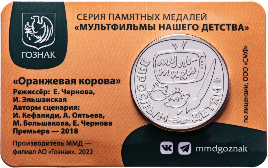 купить Жетон ГОЗНАК 2022  "Мультфильмы нашего детства - Оранжевая корова"