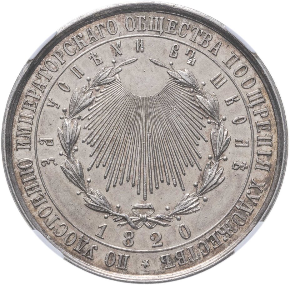 Медаль Императорского общества поощрения художеств "За успехи в школе" 1820 г. в слабе ННР MS61