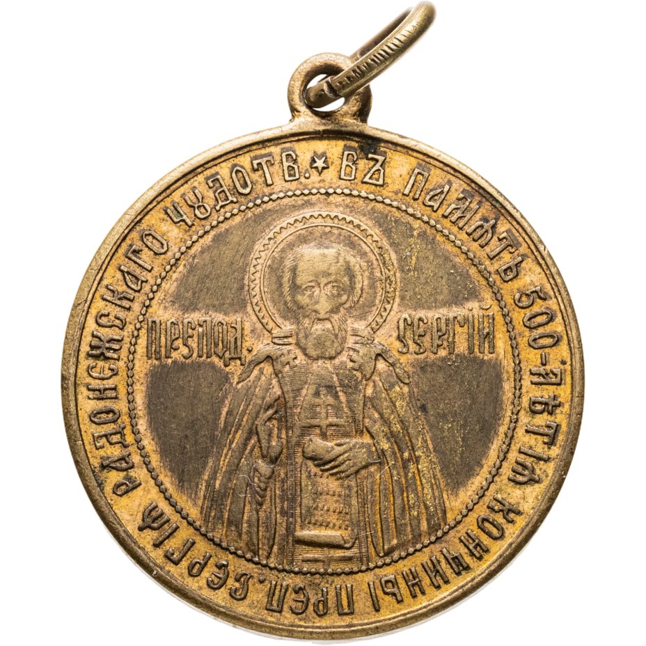 Памятный жетон в честь 500-летия со дня кончины Пр. Сергия Радонежского, неизвестная мастерская, Российская империя, бронза, 1890-е г.