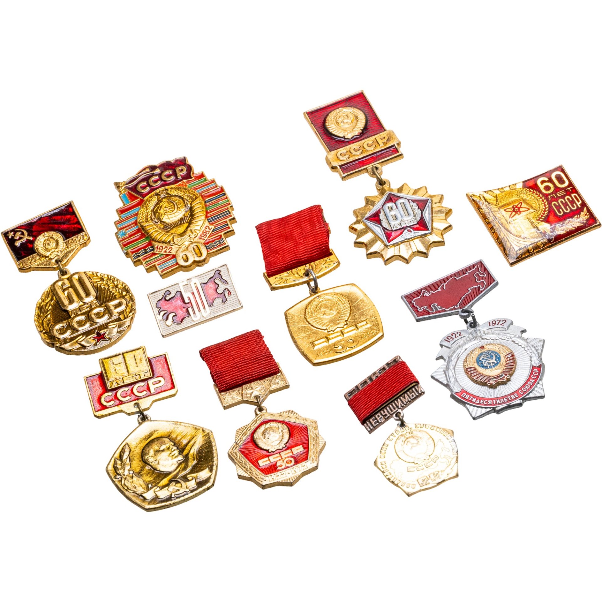 купить Набор начинающего фалериста: подборка из 10-ти значков в честь юбилея образования Союза Советских Социалистических Республик, 1970-1980 гг.