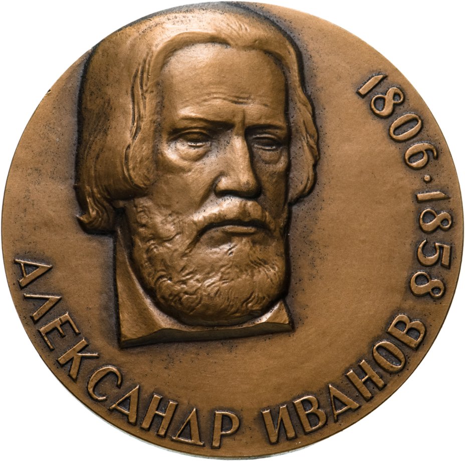 Купить Настольная медаль "175 лет со дня рождения Александра Иванова", томпак, ЛМД, СССР, 1981 г.