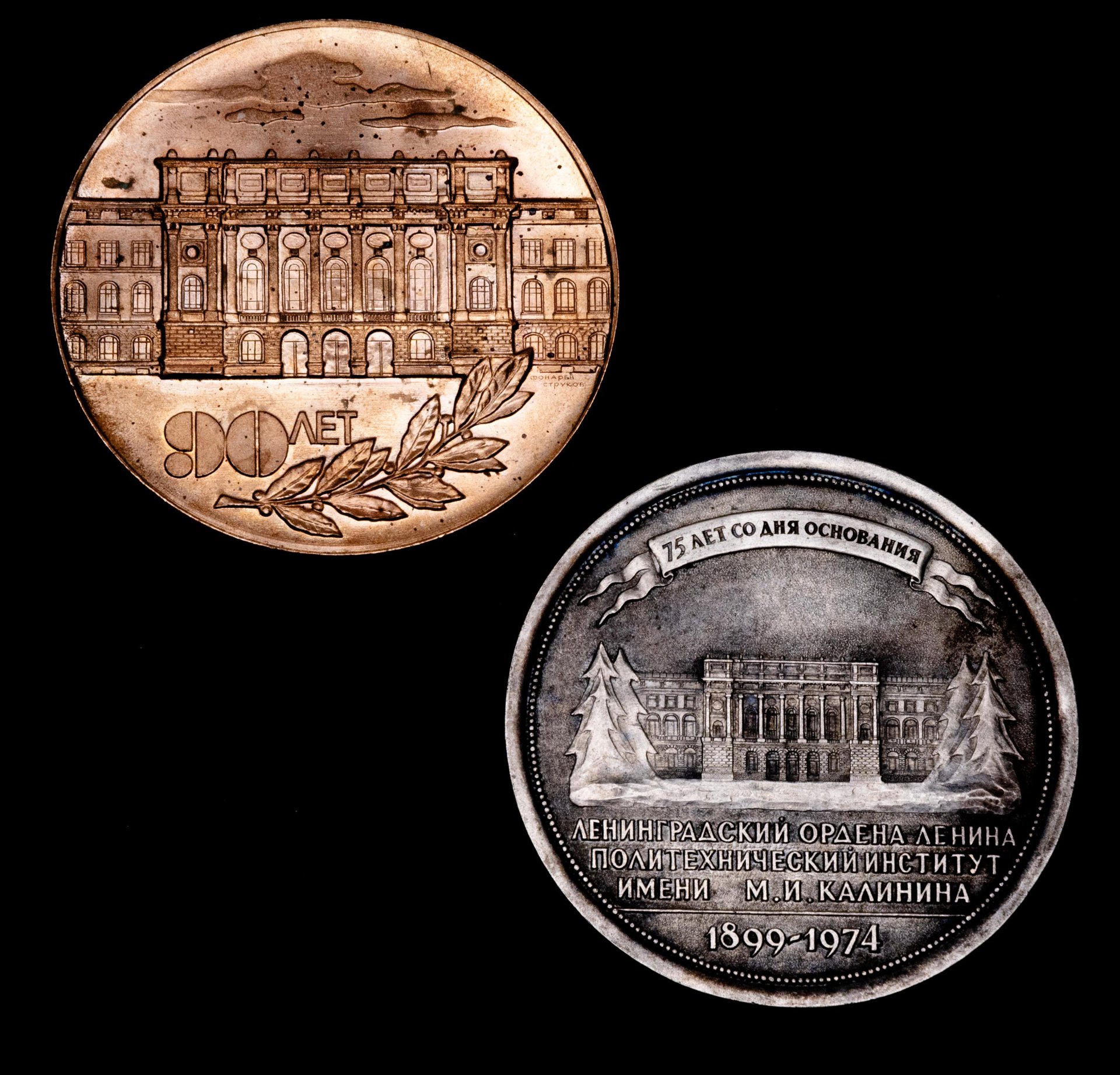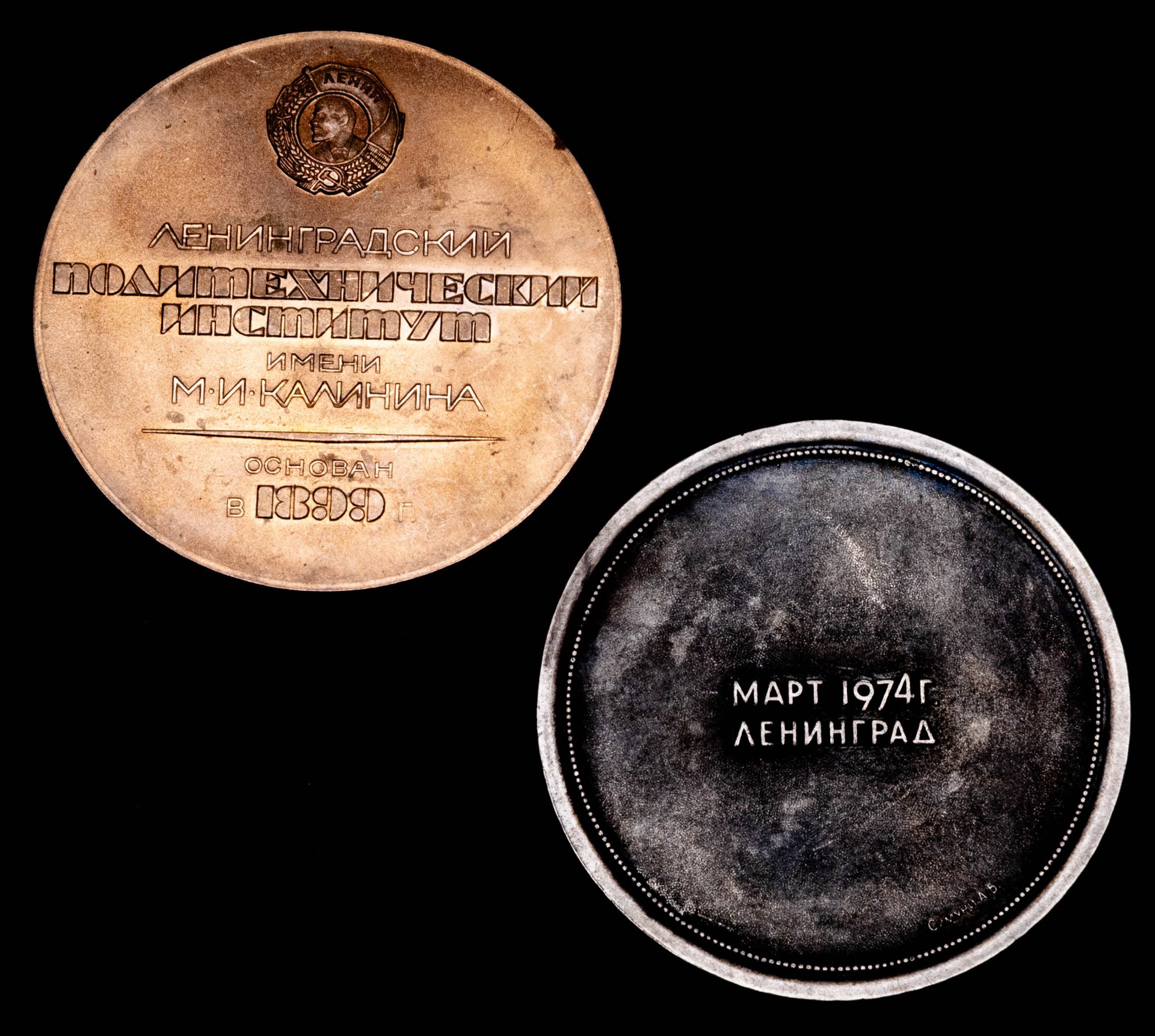 Подборка из 2-х памятных настольных медалей в честь Ленинградского политехнического института им. М.И. Калинина, СССР, 1970-1980 гг.