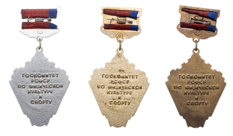 Комплект призовых знаков 1, 2 и 3 места по биатлону Госкомитета РФСФР по физической культуре и спорту, СССР, Ф-ка спортивных сувениров, 1980-е гг.