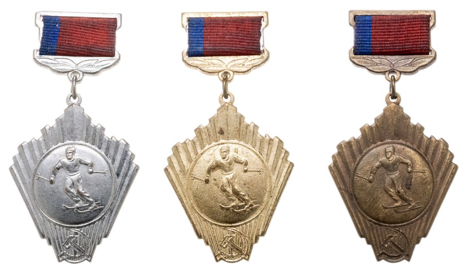купить Комплект призовых знаков 1, 2 и 3 места по биатлону Госкомитета РФСФР по физической культуре и спорту, СССР, Ф-ка спортивных сувениров, 1980-е гг.