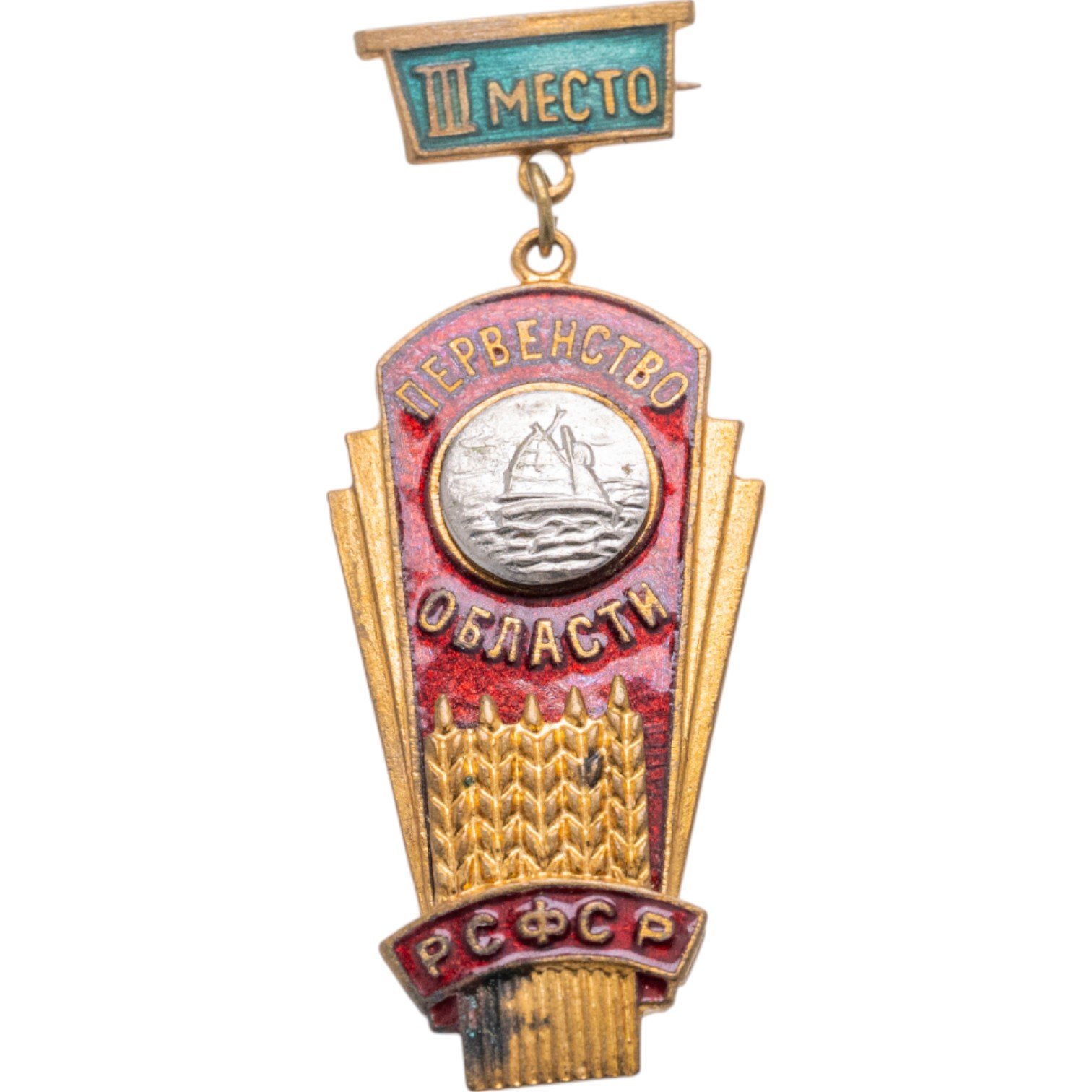 Купить Призовой нагрудный знак 3-го места по парусному спорту областного первенства РСФСР, латунь, эмаль, булавка. СССР. 1950-е гг.