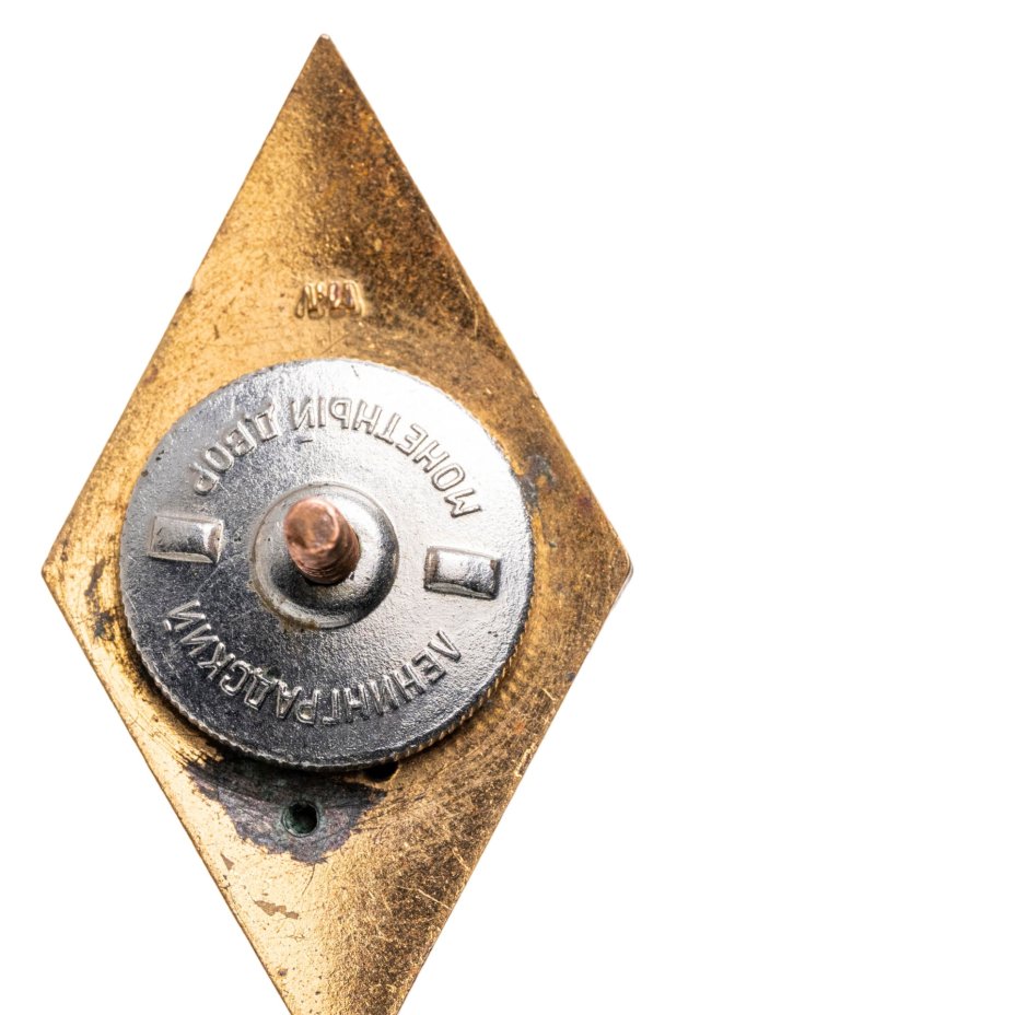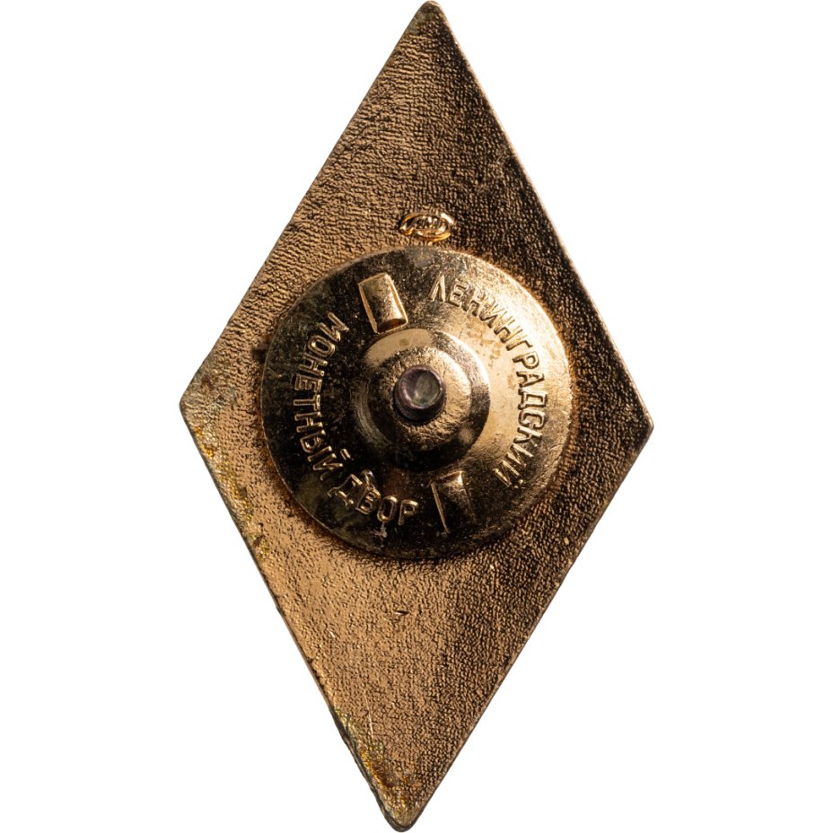 Знак-ромб за окончание государственного университета, латунь, горячая эмаль, винт. СССР, ЛМД, 1970-1990
