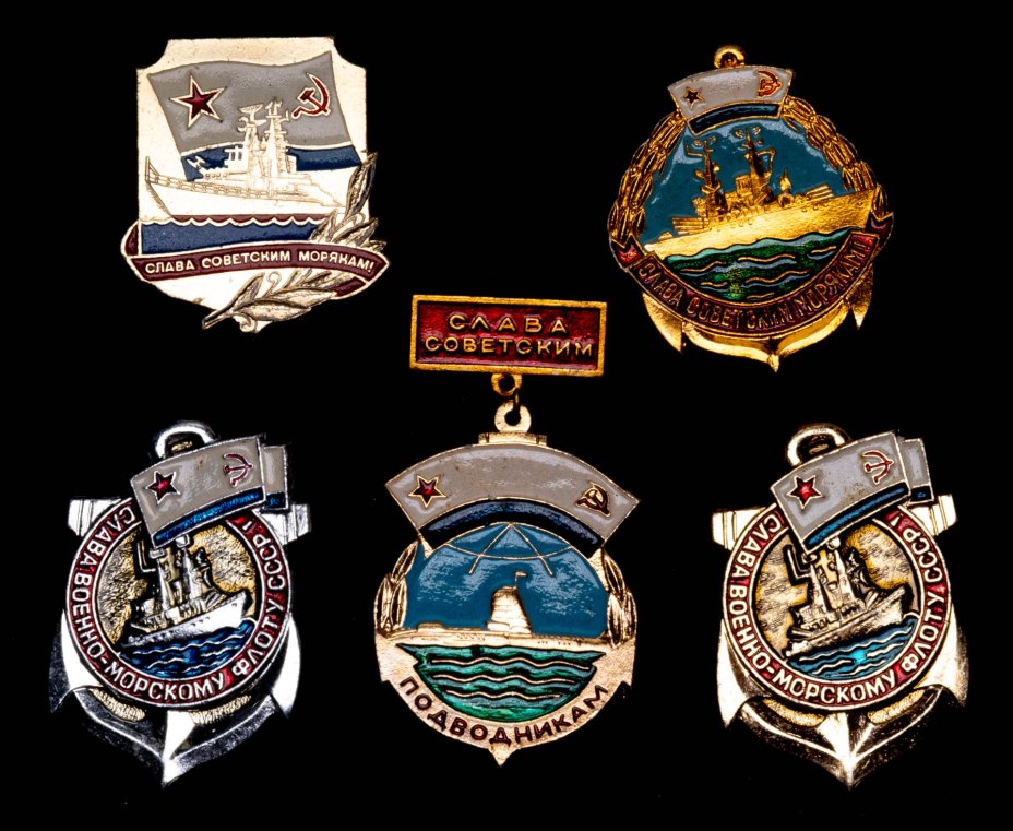 Купить Набор начинающего фалериста: подборка значков-славиц в честь Советского военно-морского флота, СССР, Кишиневский экспериментально-механический з-д, 1970-1980 гг.
