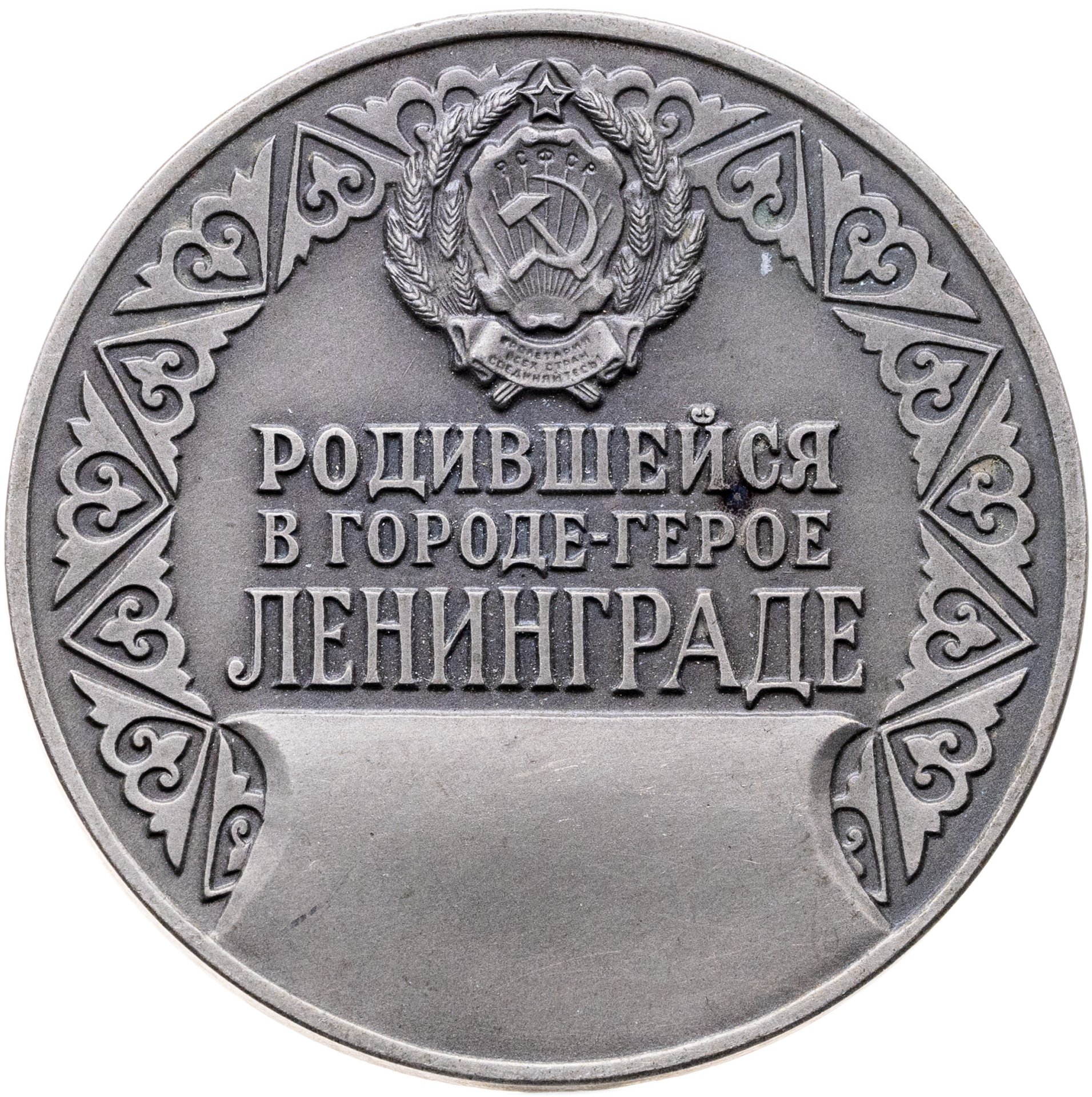 купить Памятная настольная медаль "Родившейся в городе-герое Ленинграде", томпак, медальер И.С. Комшилов. СССР, ЛМД, 1960-1980 гг.