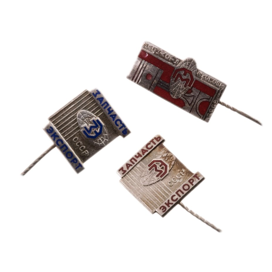 Подборка 3-х сувенирных значков Всесоюзного Внешнеторгового объединения "ЗапчастьЭскспорт", СССР, 1960-1970 гг.