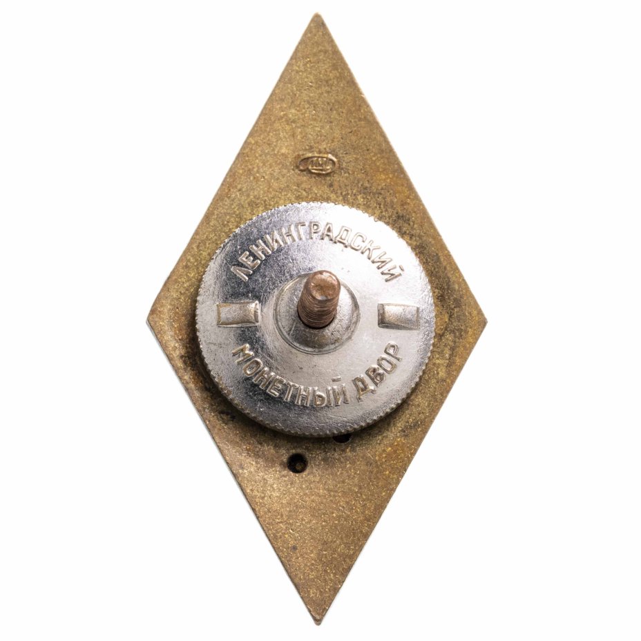 Знак "Об окончании технического ВУЗа", латунь, горячая эмаль, ЛМД, СССР, 1965-1975 г.