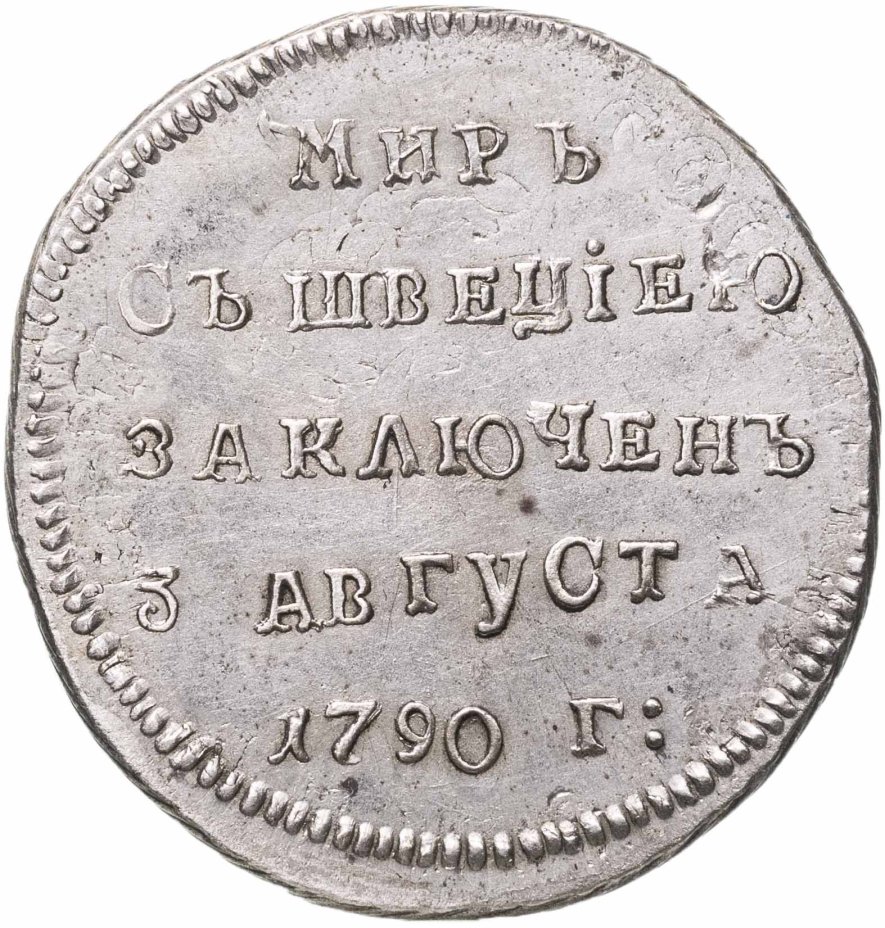 - Разновидность: в память заключения мира с Турцией 1791 г. (мир с Портою), серебро