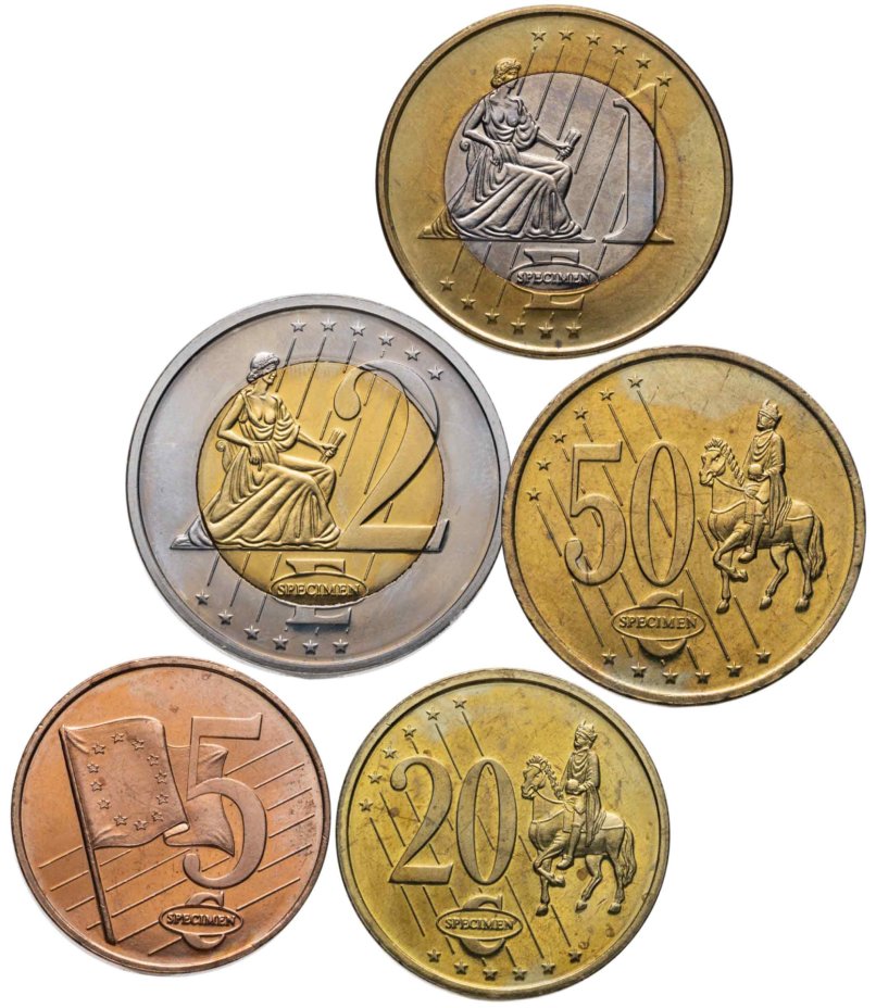 Дания набор монетовидных жетонов 5, 20, 50 евроцентов и 1, 2 евро 2003