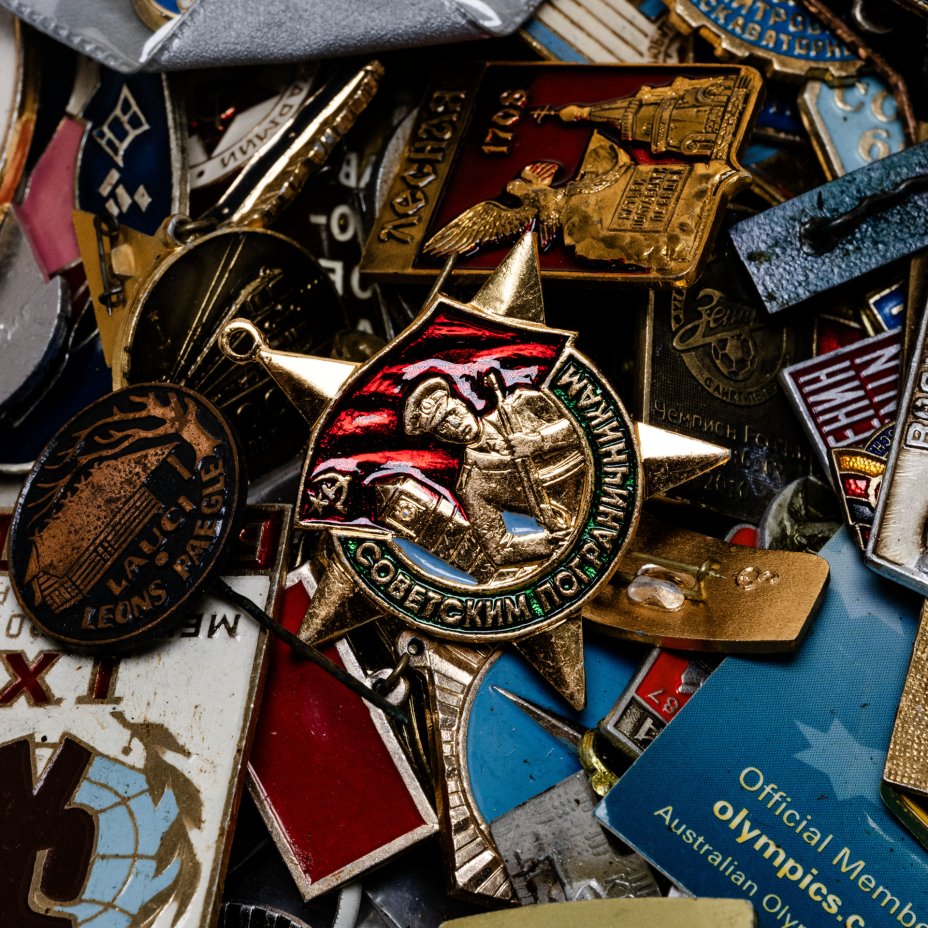 Набор начинающего фалериста: свыше 3 килограмма значков в мешке, 1950-2000 гг.
